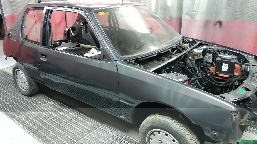 Bueno, seguimos con el proceso. Una vez desmontado ya movimos el coche y todas las piezas al taller. (Aparte de que por tercera vez me entraron a robar. Esta vez la caja mannesman verde mitica, y el pomo del 205. Los otros dos robos fueron en su día las molduras rojas de las defensas, y otra vez la radio rompiendome toda la consola central.
