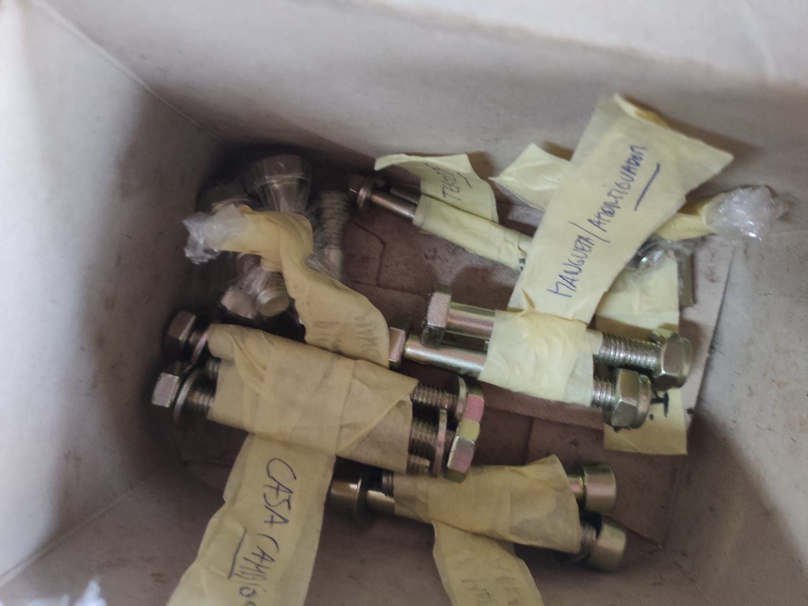 Tenemos 8 espárragos con tuerca (esto es habitual, muchas veces sale el esparrago entero), 1 tuerca (el única esparrago que quedó en la culata) y un tornillo (que me ha costado un montón sacar)![]()