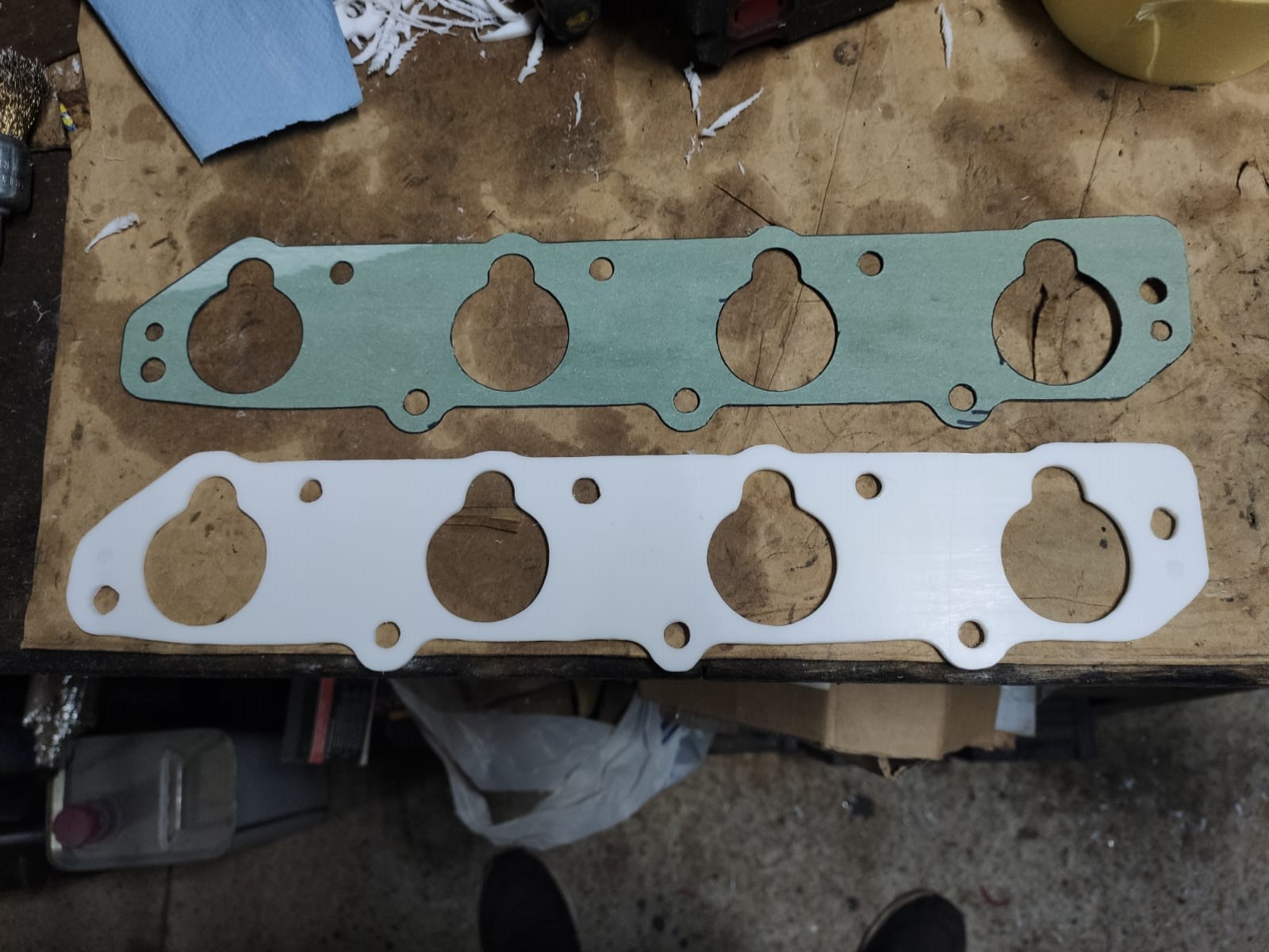 Hemos limpiado y montado el soporte del antipar y de la transmisión derecha, la brida de la bomba de agua nueva, pintado y montado el tubo trasero del bloque y cambiado los 2 manguitos que faltaban, aún de caucho, por otros de silicona...