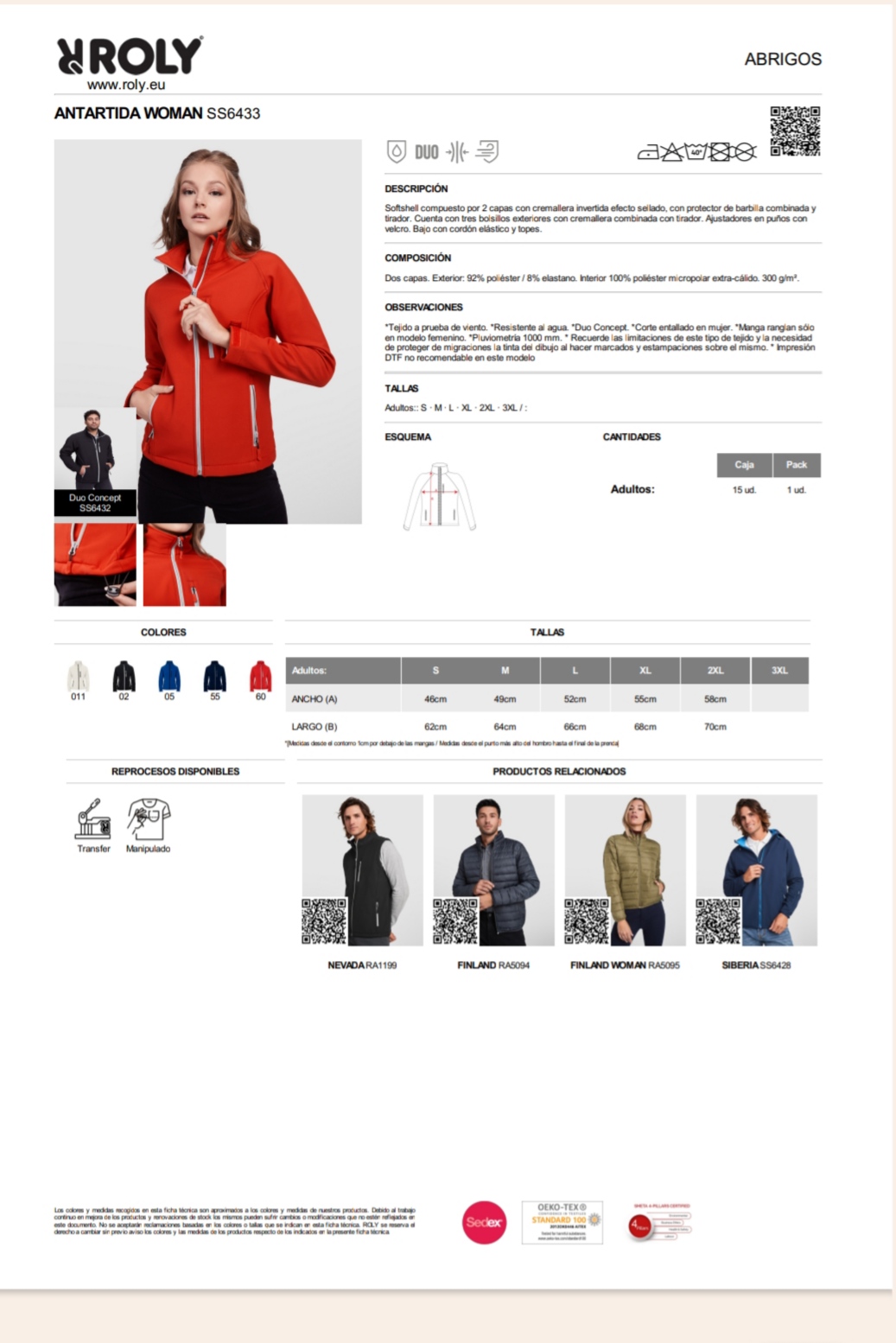 1 de mujer. talla M, color rojo 60, nombre en chaqueta: OihRsc
