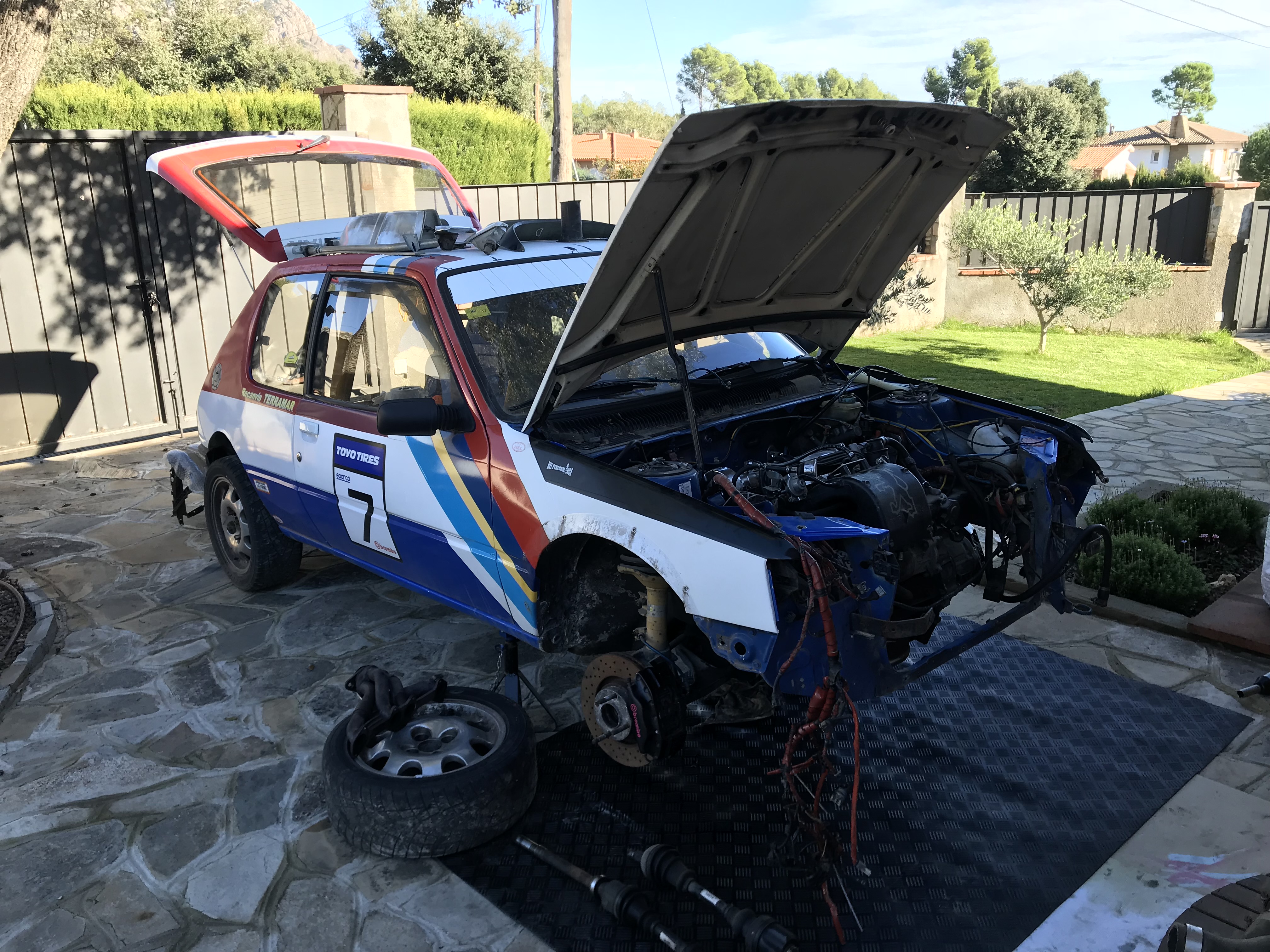 Muchos o quizá no tantos ahora mismo de este foro saben que me van los retos y quería y quiero convertir mi Gti de toda la vida ( que no es este) en uno tracción 4 con turbo y después de que un buen amigo (Sevegti sin ti esto no fuera posible aunque casi me cuesta el divorcio jajaja…) me consiguiera este 205 empieza a ver la luz, os voy enseñando y explicando más adelante..esto es en el 2018, un 205 Gti rojo tuneado que daba pena verlo, y eso es lo que tenia para empezar, y pocas piezas más…