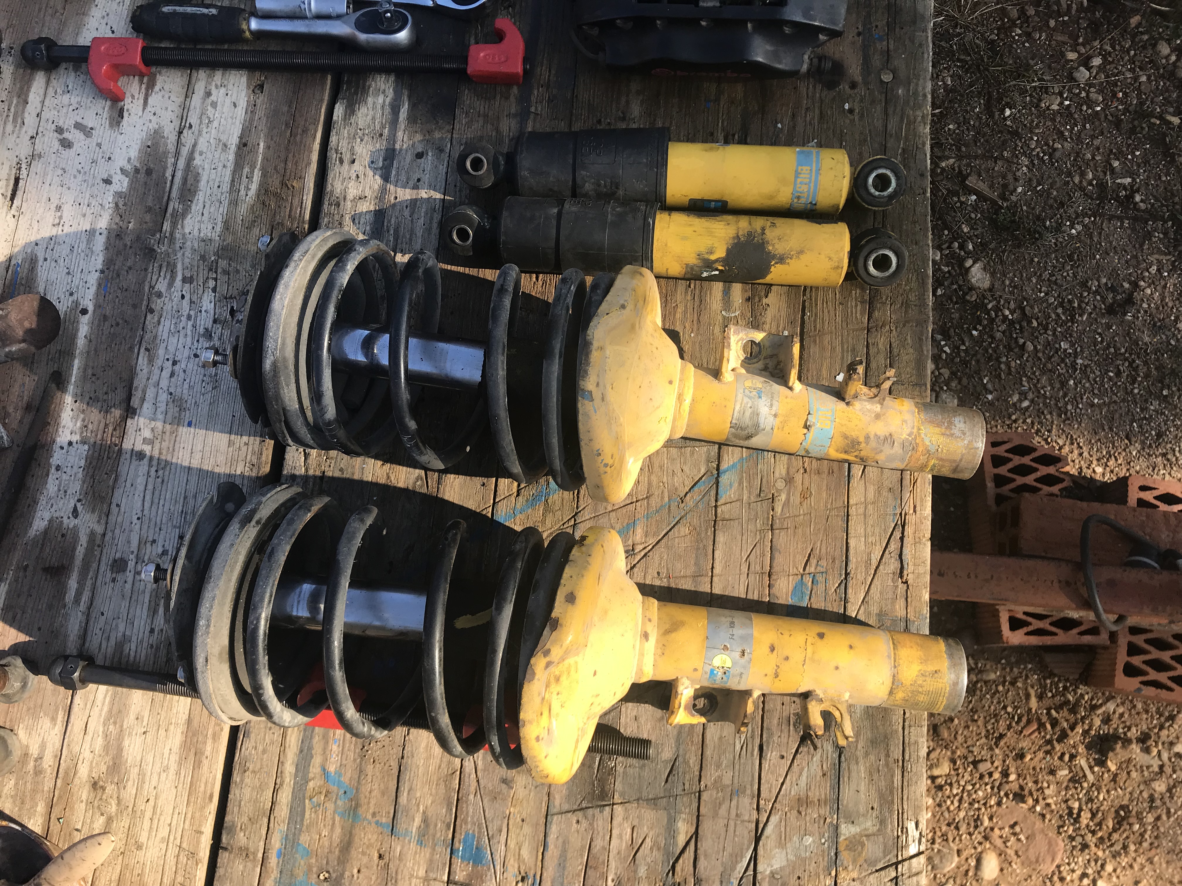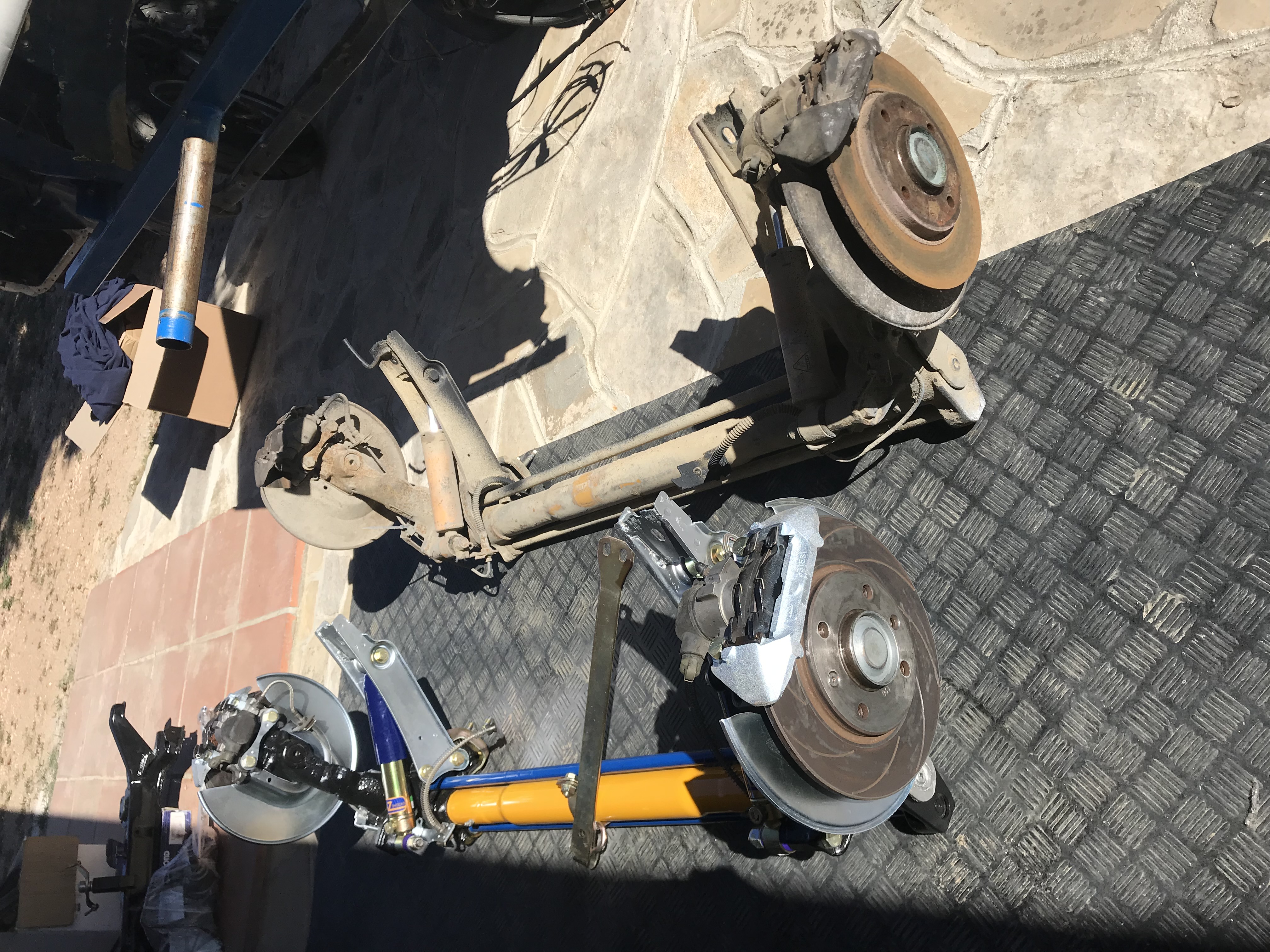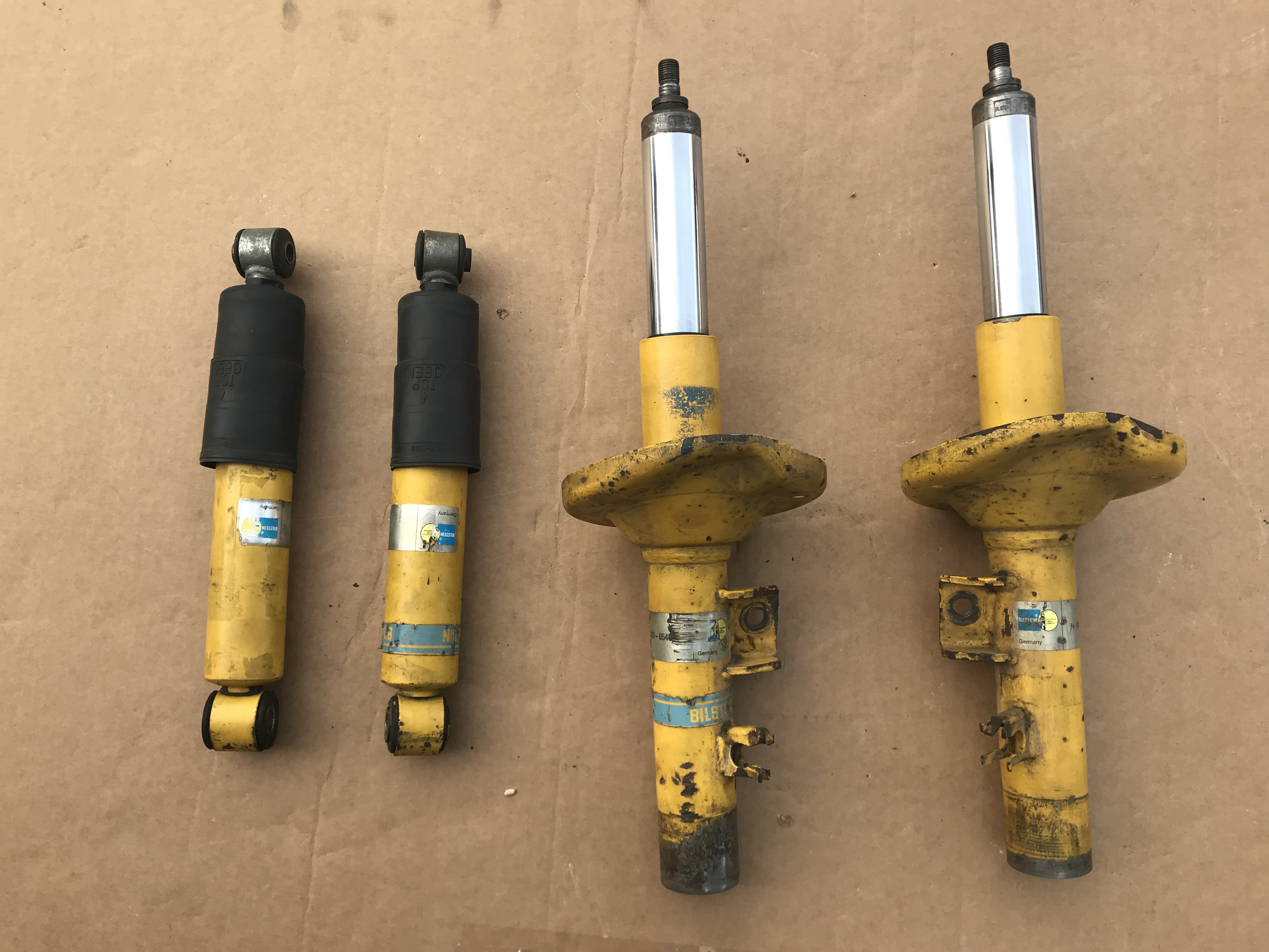 Las suspensiones Bilstein B6 vástago gordo y suspensión trasera con las pinzas Brembo de 4 pistones que llevaba las vendí, compré suspensiones nuevas, otras pinzas y unos discos Brembo rallados.