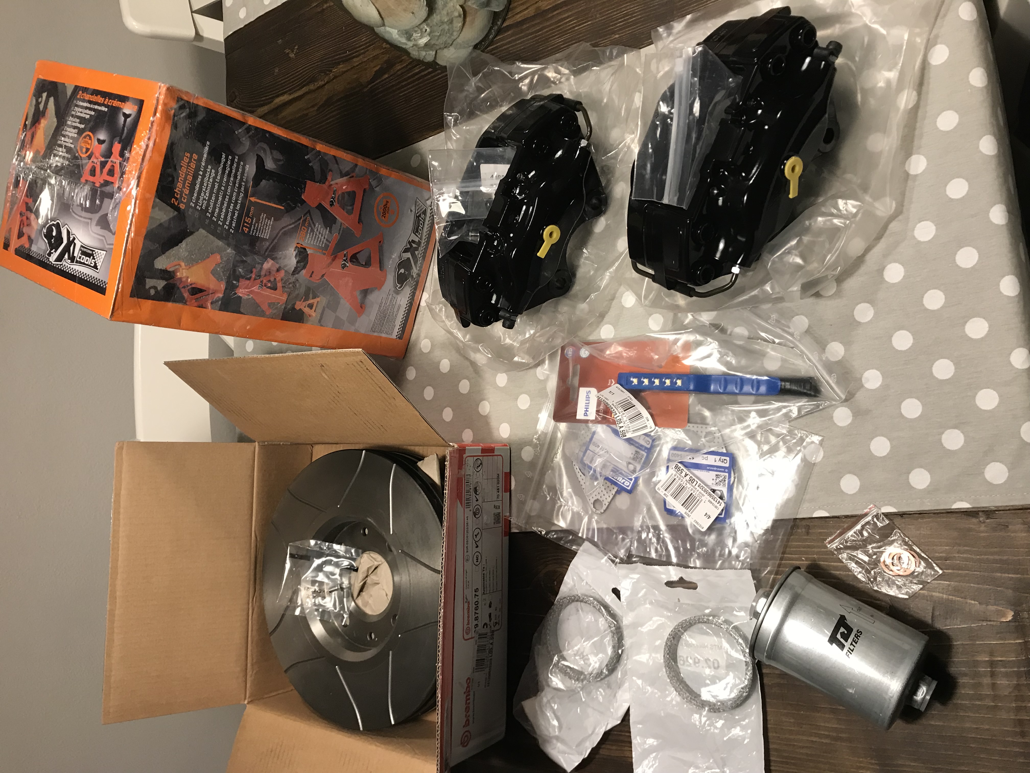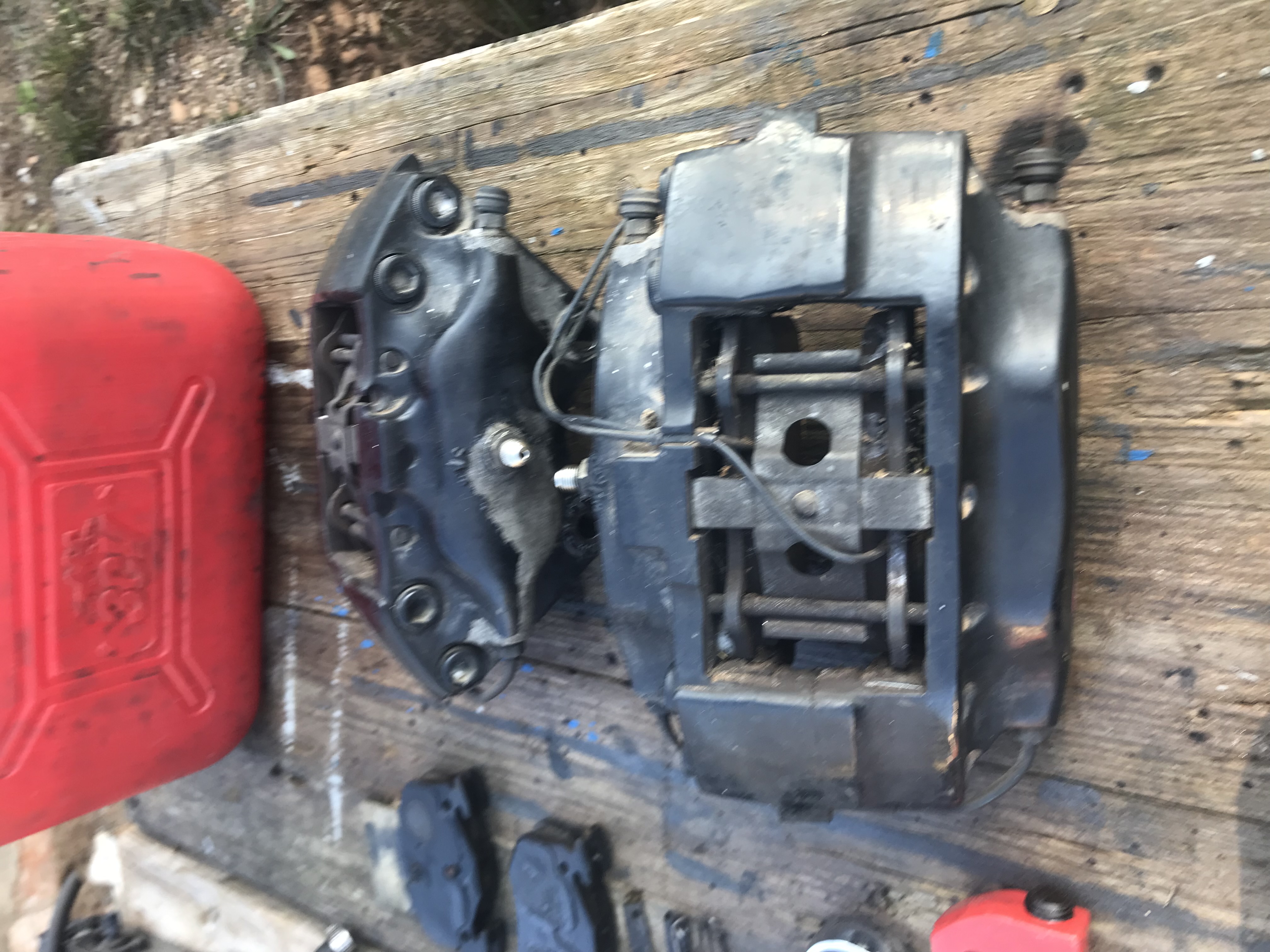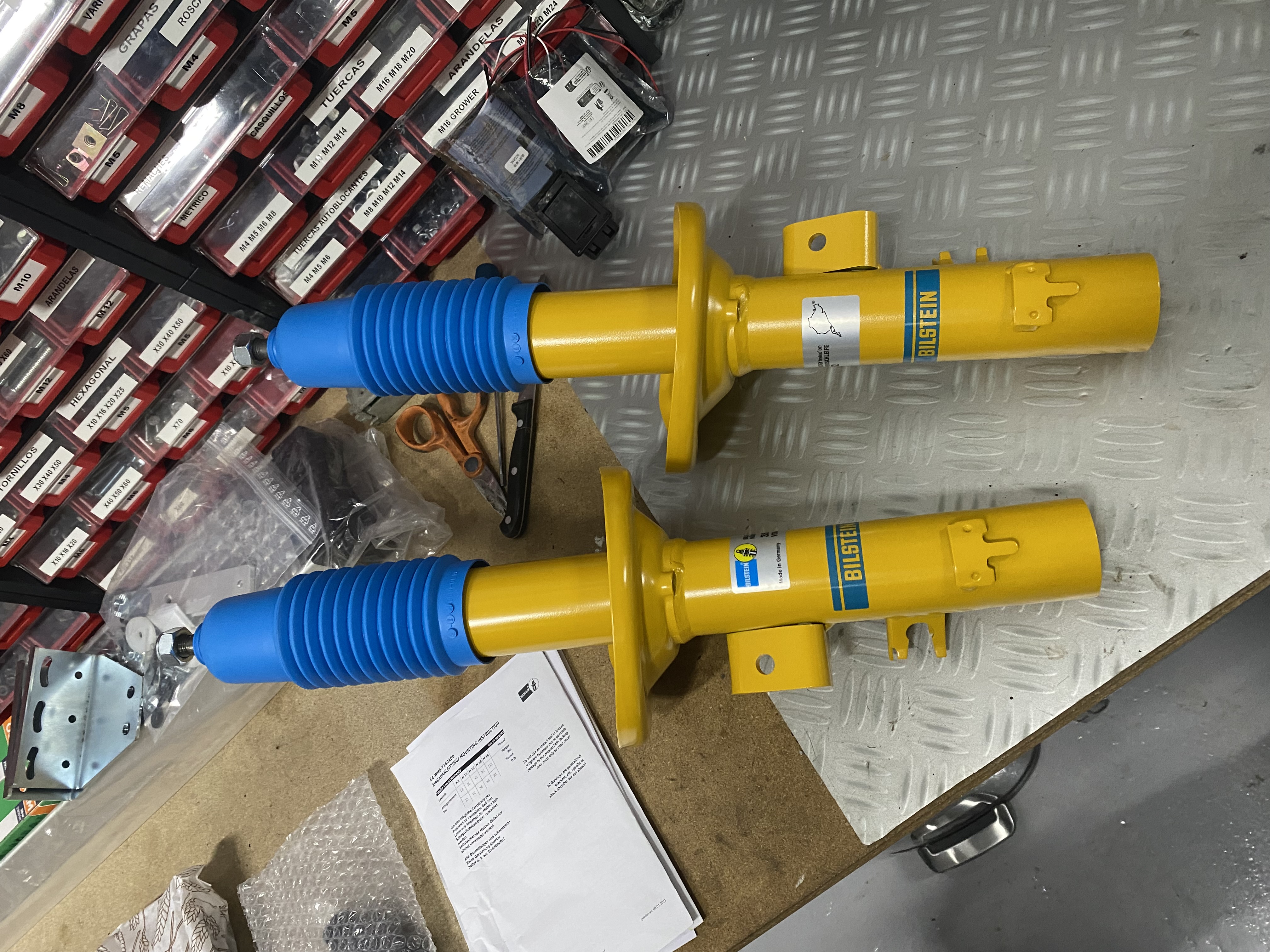 Las suspensiones Bilstein B6 vástago gordo y suspensión trasera con las pinzas Brembo de 4 pistones que llevaba las vendí, compré suspensiones nuevas, otras pinzas y unos discos Brembo rallados.