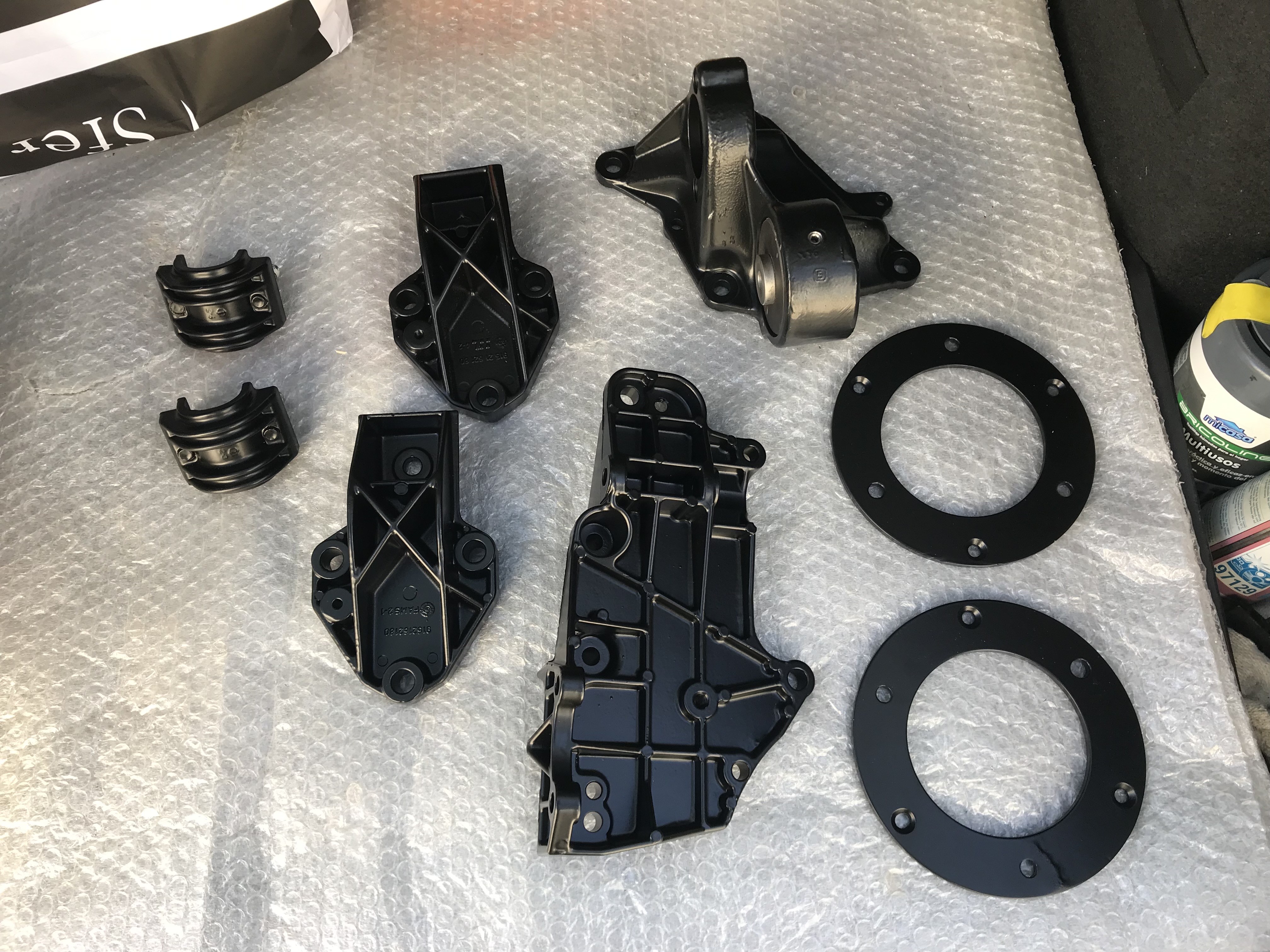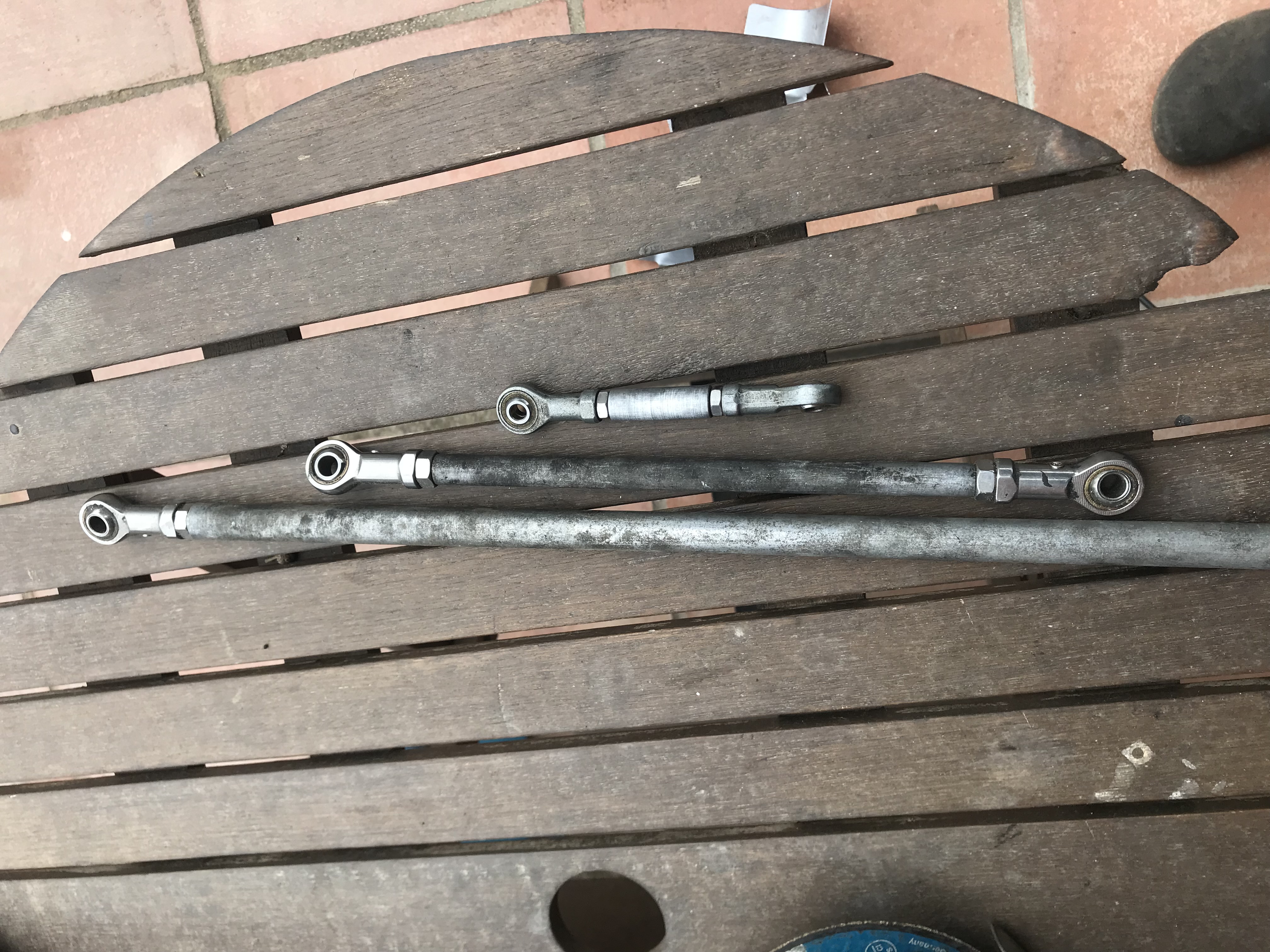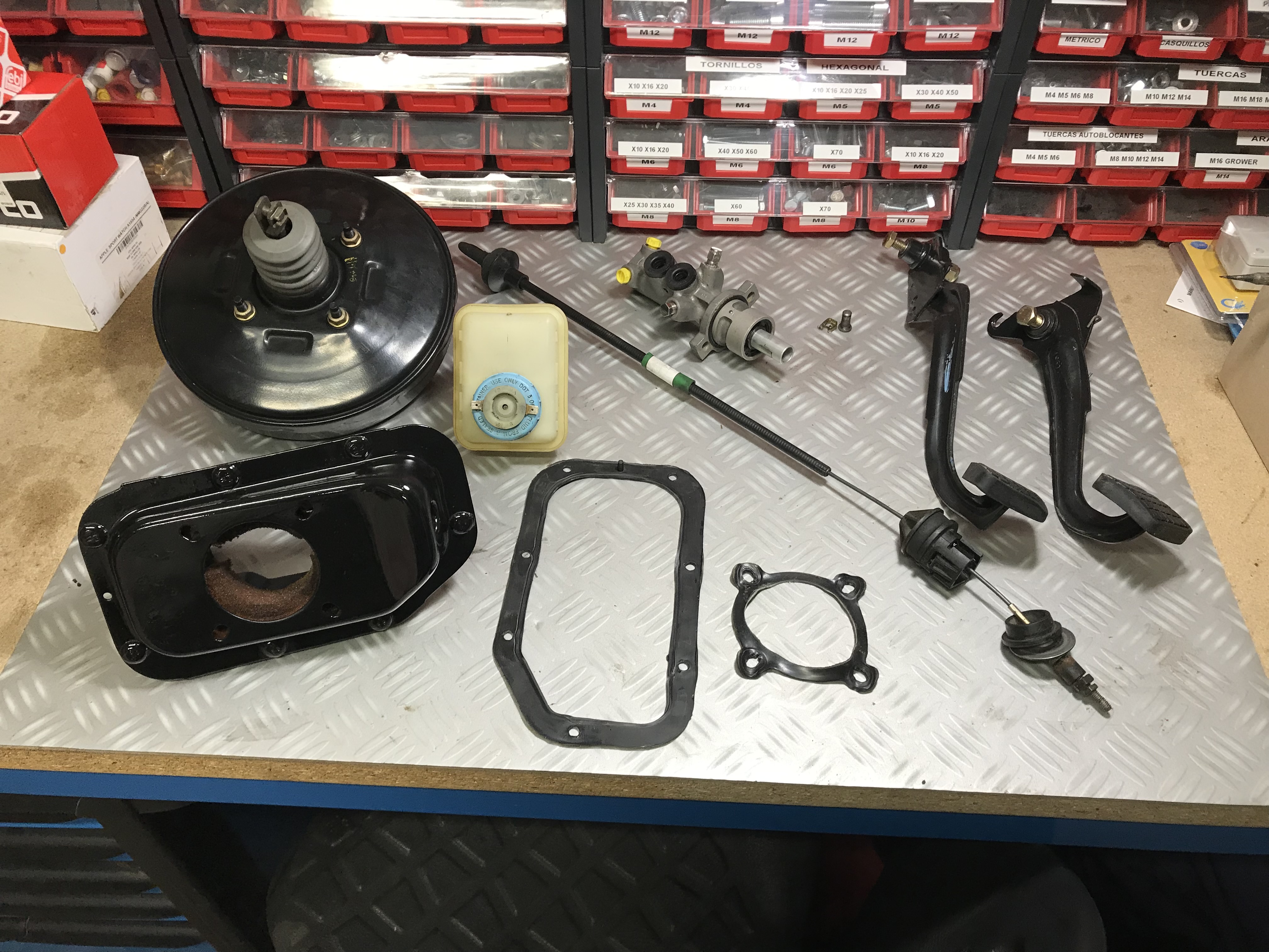 Piezas pintadas en polvo, emblemas restaurados y saneamiento de toda la caja de aire, restaurar varillas de cambio con rótulas Uniball y piezas varias..
