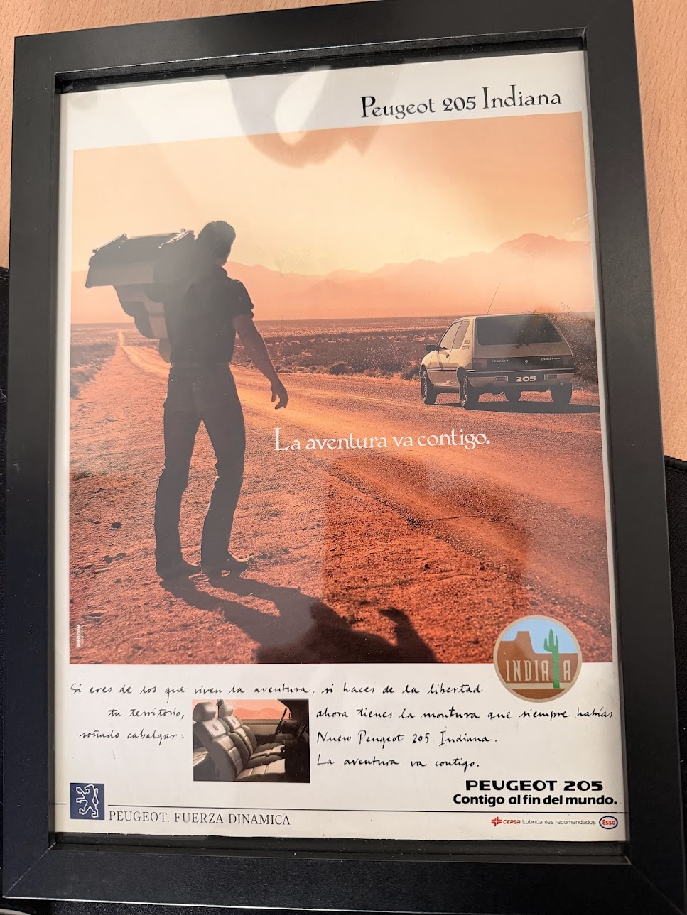 8. Publicidad Indiana, consegui una publicidad antigua de Indiana, muy loco ver que la publicidad era un a persona con el asiento al hombro.