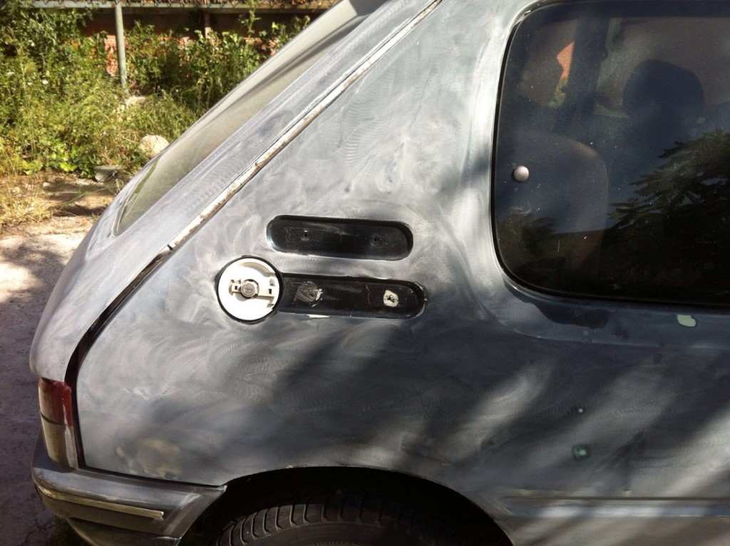 Una vez que tenia el interior medio decente, le tocaba al exterior que no estaba muy fino....la verdad es que yo tampoco lo he dejado fino fino... pero es lo que hay, ni soy rico, ni soy chapista... jejejeje asi que me tocó hacerlo como pude y conformarme con el resultado...