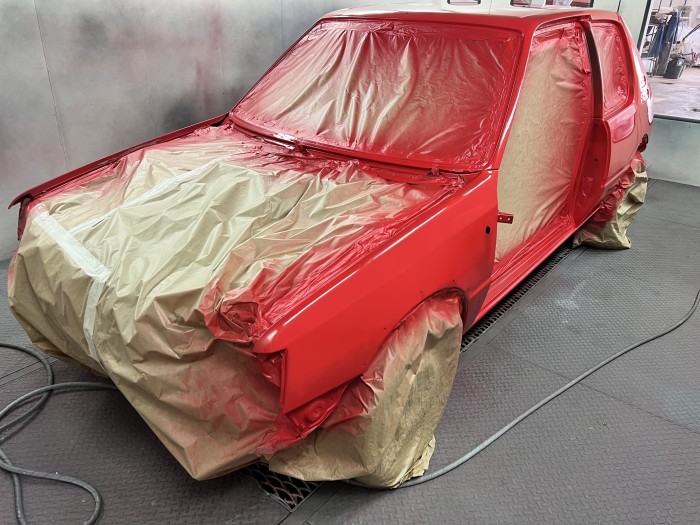 El polyester se lo damos para cubrir cualquier imperfección en la carrocería. Luego se taquea todo. Se le da una mano de aparejo fina y se vuelve a taquear antes de pintar.