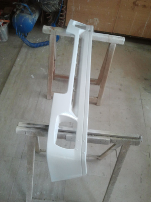 me lie a desmontar el faldón y repáralo con lo que pude… así que con presupuesto de estudiante compre una imprimación, pintura blanca brillante y me lie…