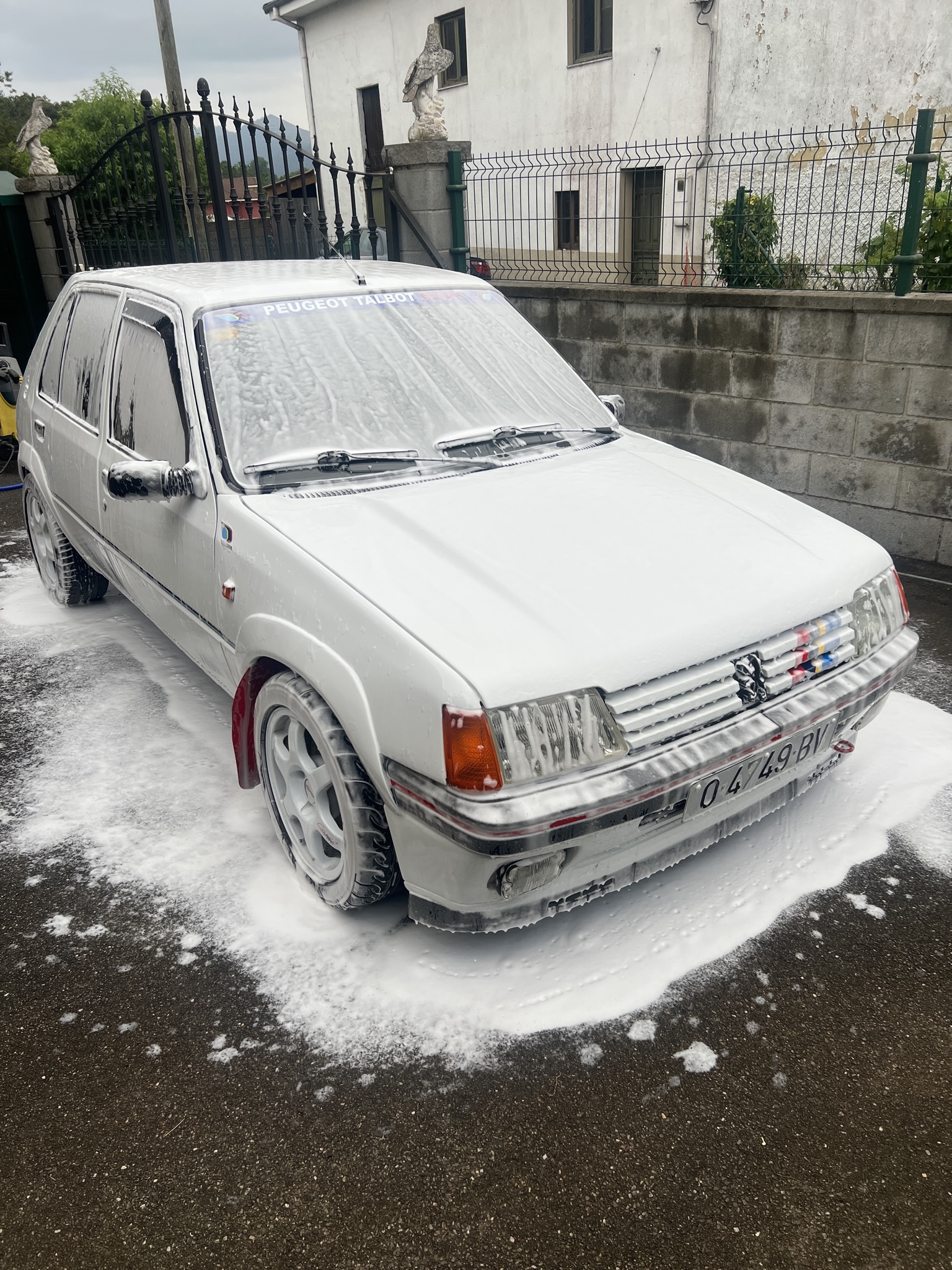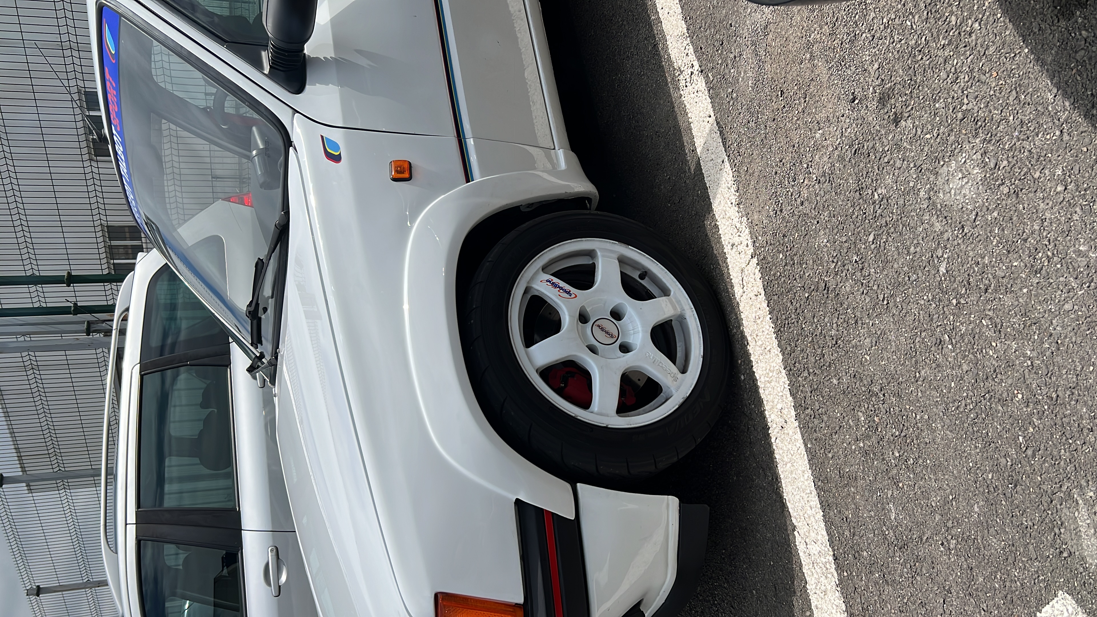 Tras un tiempo le coloqué los aletines del rallye provisionales, tocará hacer otros mejor, se pusieron unos Viarouge Circuit tarados al peso final del proyecto, unos muelles eibach pro kit , con la cuna de 309 GTi resoldada, trapecios de 309 GTi con powerflex black. Encontré un chollazo de barra estabilizadora de 23 delantera y se la coloqué. Compré 4 Speedline 2108 en 15x6,5. Me queda mucho por resumir y por hacer, pero según vaya haciendo el coche iré actualizando el post que seguro que a alguno le gusta la idea. Así está ahora el coche.