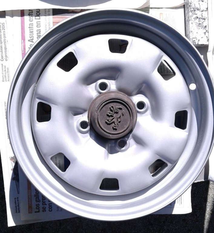 Cuando compre el 205 trajo unas llantas de chapa con unos tapacubos no originales, puesto que sus llantas estaban un tanto afectadas de óxido y carbonilla calcificada, el trabajo era complicado y asi no me gustaban como estaban, pues un dia surgio la opcion de comprar las llantas de sin tapacubos que llevan el centro tapabujes.