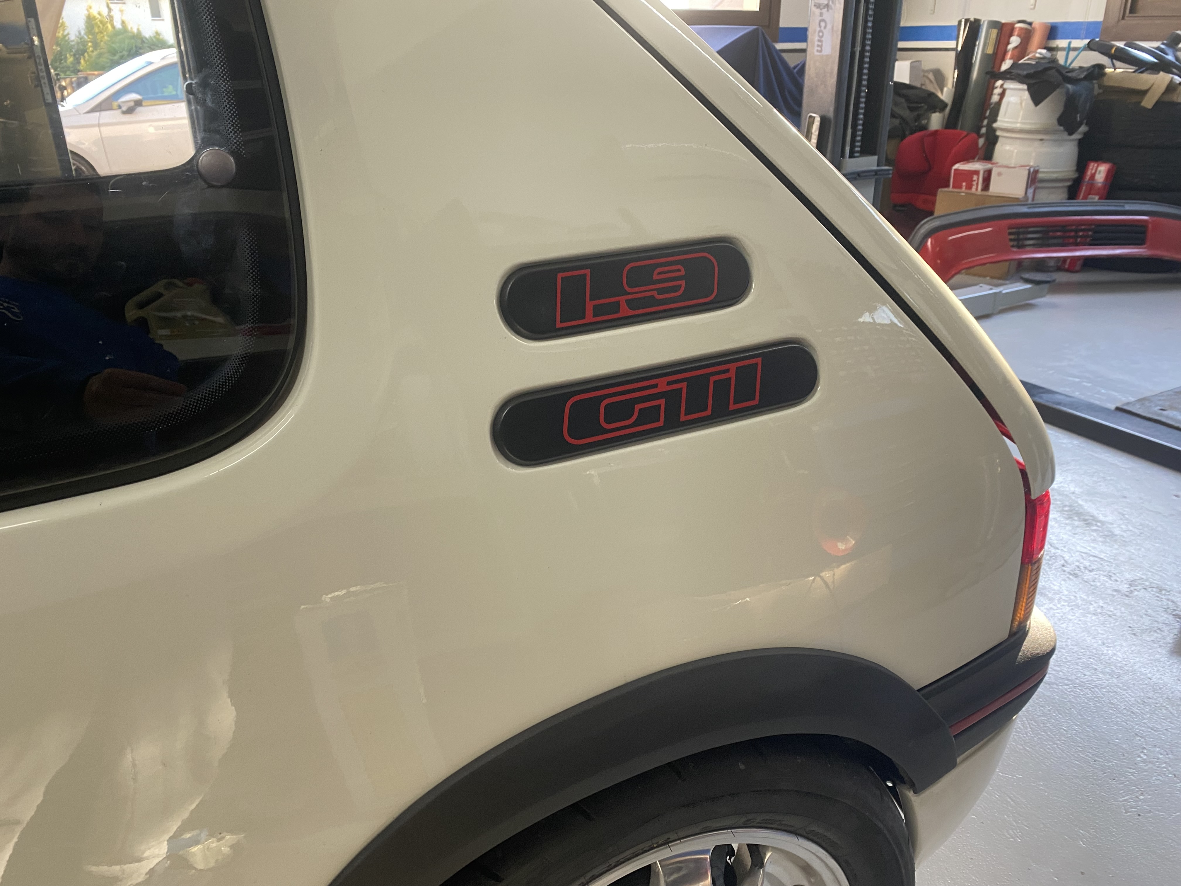 El 18 lo subo a Igualada a alinear al curro de mi amigo Checa (Red205) y los dias posteriores colocamos emblemas, tiras en los paragolpes y la bandeja la pinto con sprai negro, el resultado me sorprende..