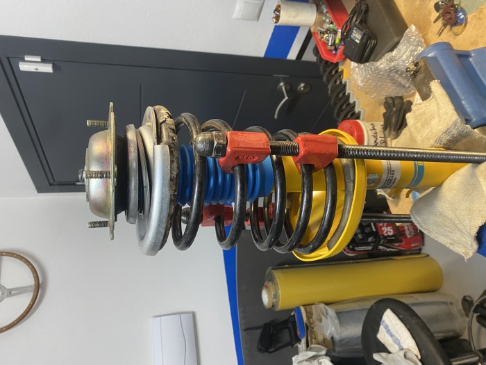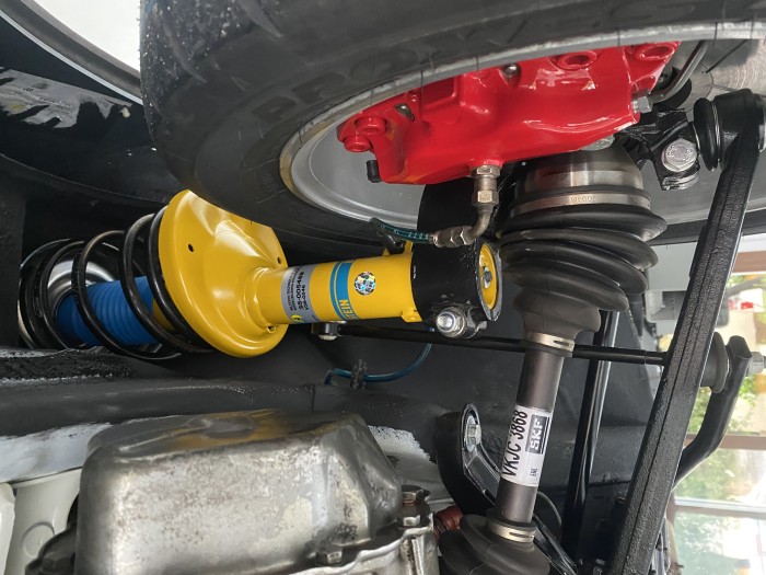 Le monto una Dash cam delantera y otra trasera, le instalo el techo pero antes le pongo un aislante térmico de 5mm. Como os comentaba al principi cambiamos suspensión roscada GAZ por unos Bilstein grupo N con unos muebles Bilstein de la vieja escuela que llevaba en el otro GTI, ya que con la roscada quedaba muy amorrado de delante y a la mínima al llevar separadores rozaba con los aletines.
