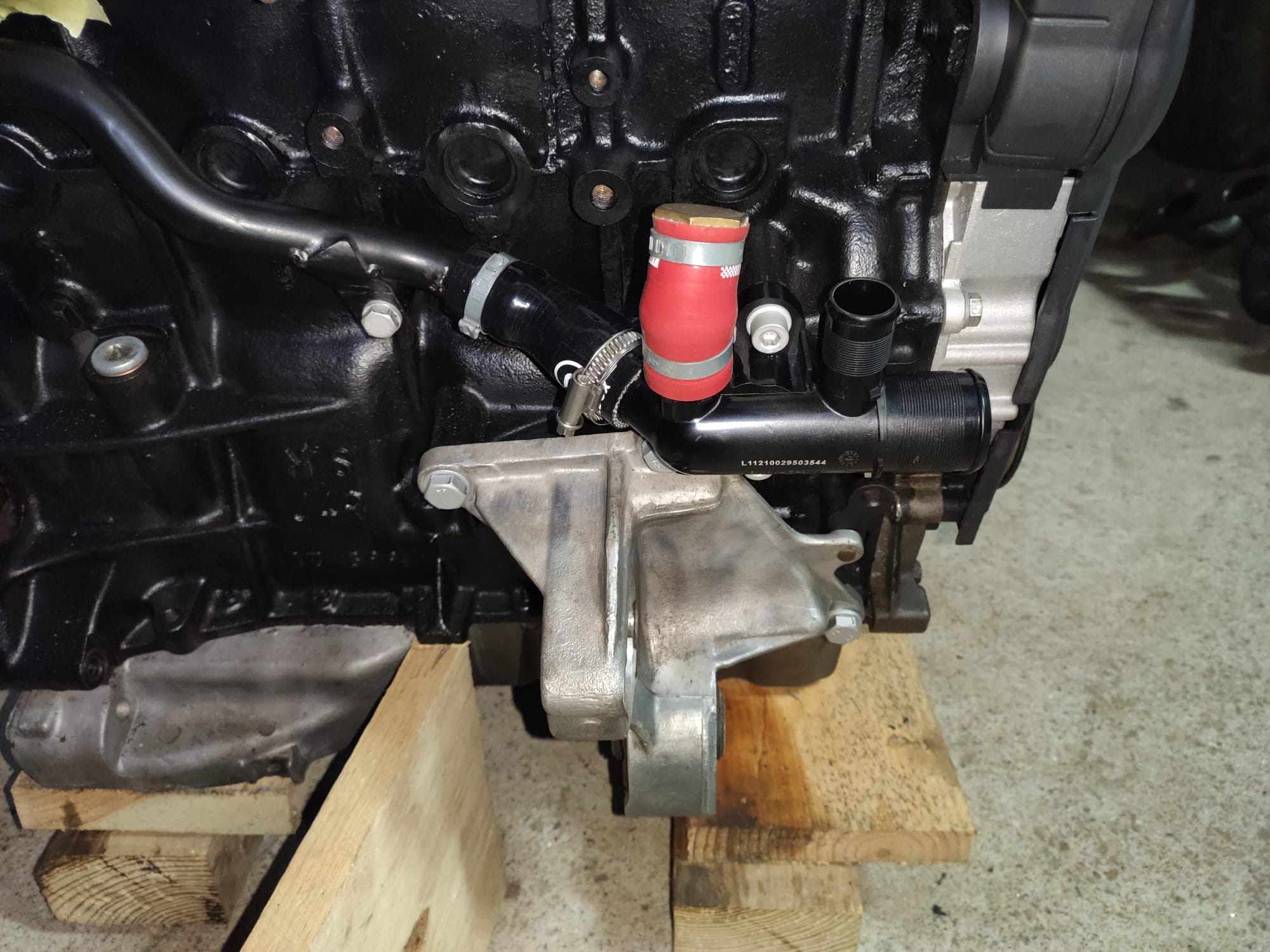 Hemos colocado el taco motor lado distribución nuevo, hemos montado el retorno de la dirección asistida, el depósito del liquido de dirección y también hemos montado el manguito de retorno del combustible...