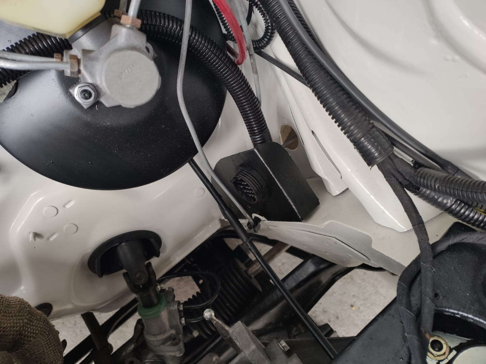 Un soporte que hemos fabricado para el conector de la instalación eléctrica, que va detrás de la batería...