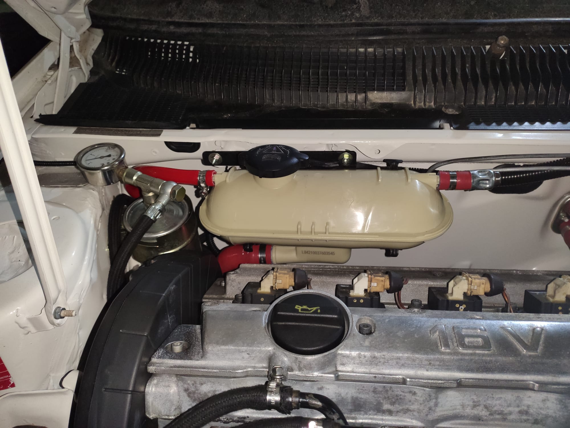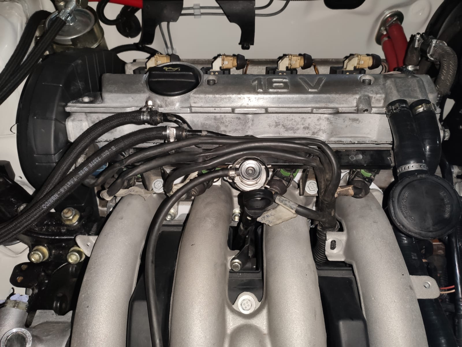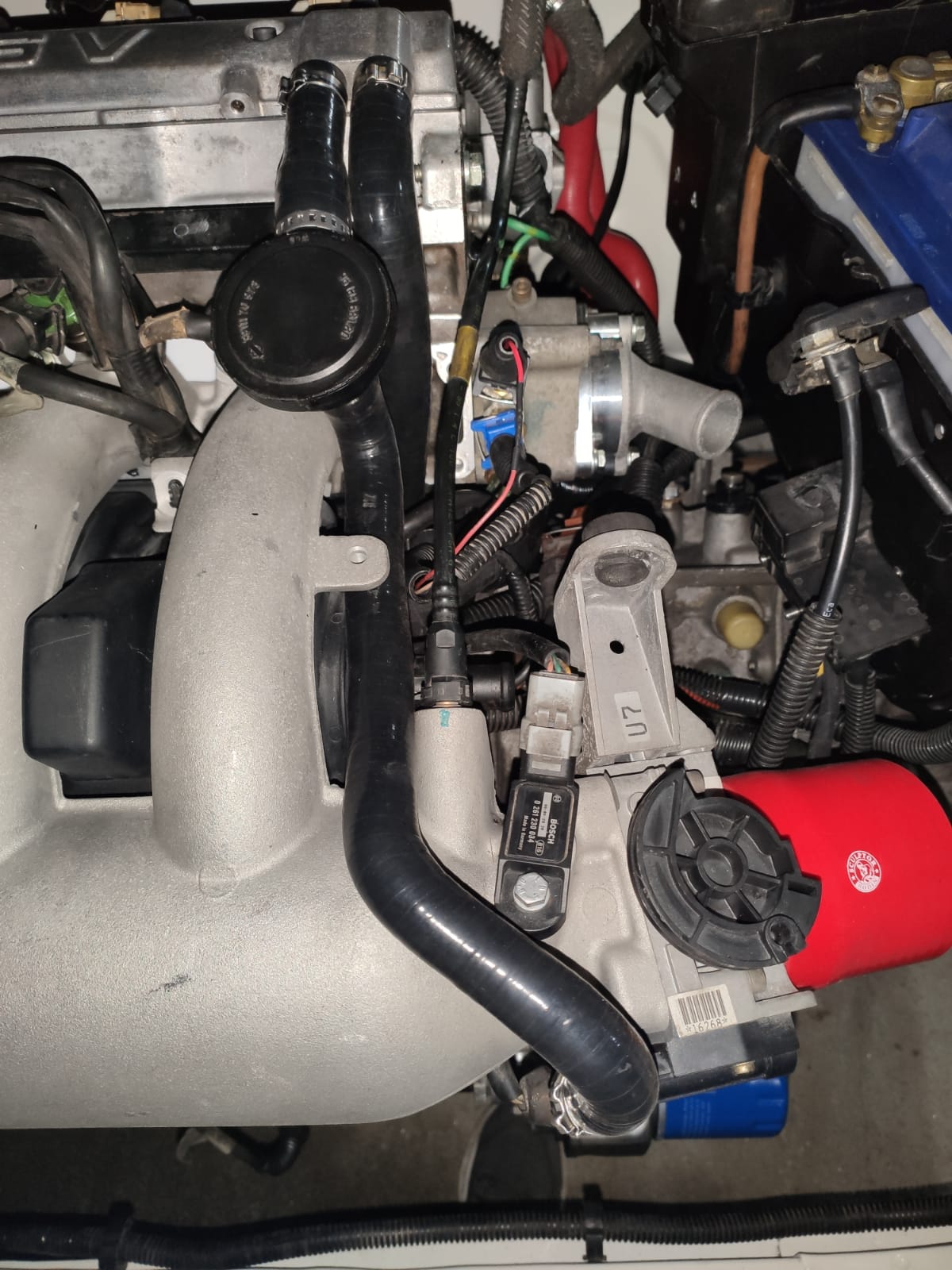 Aquí he usado algún trozo de manguito suelto que aún me quedaba del kit original de GTI 8V, he montado abrazaderas de presión, me parece que queda un poco más profesional, sobre todo en sitios donde es dificíl tener que desmontar o tocar...