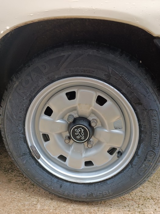 Me pude hacer con 3 ruedas (2 con llantas de tapabuje y otra de llanta normal), por lo que pinte las dos interesantes y le monte neumaticos nuevos que ya hoy puse en el coche. Aunque no es su tono de plateado, queda muy bien y mas respecto a como lo tenia.