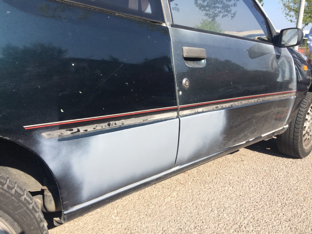 Una vez que tenia el interior medio decente, le tocaba al exterior que no estaba muy fino....la verdad es que yo tampoco lo he dejado fino fino... pero es lo que hay, ni soy rico, ni soy chapista... jejejeje asi que me tocó hacerlo como pude y conformarme con el resultado...