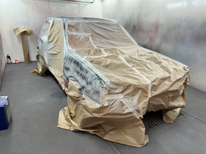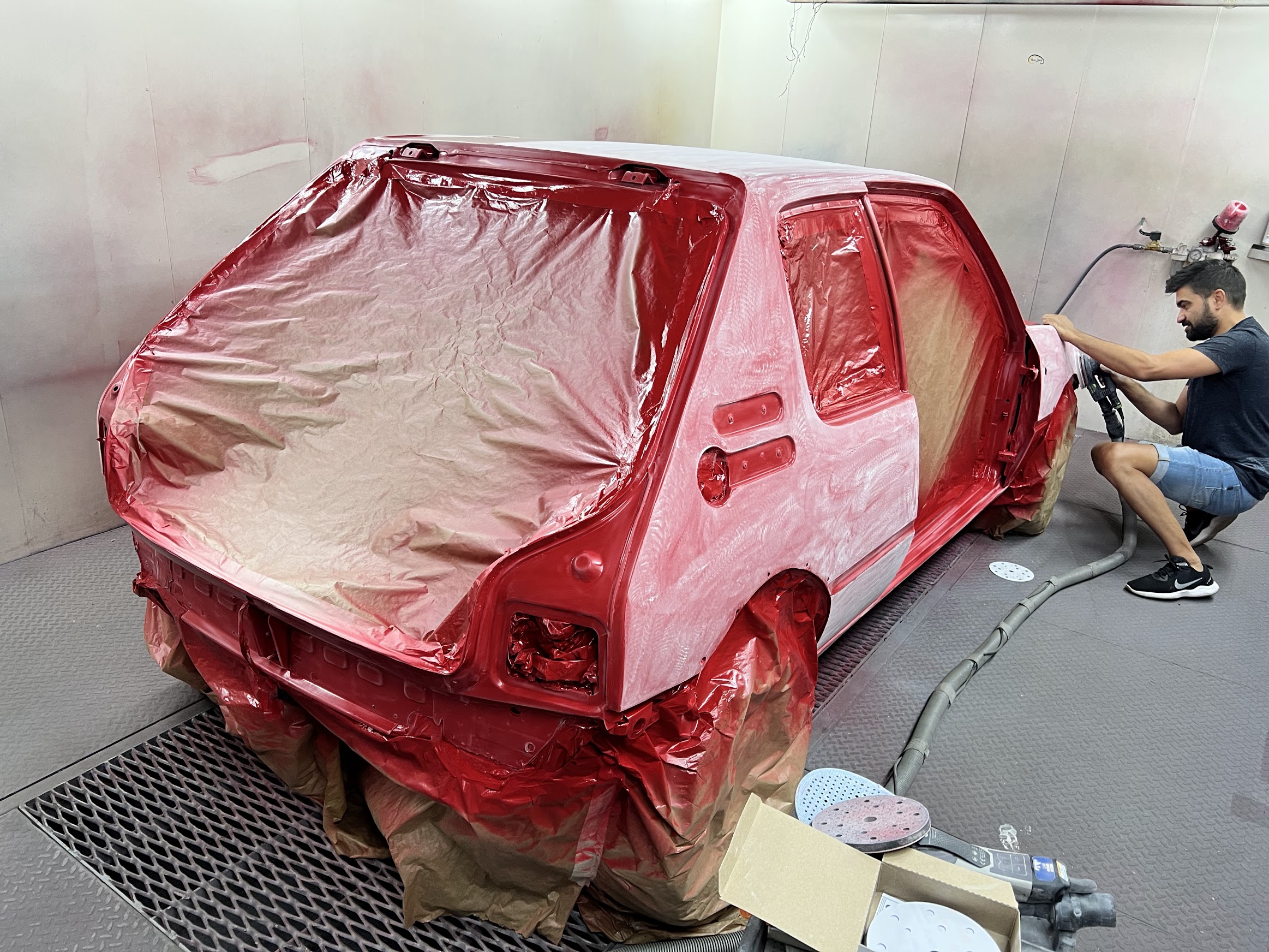 El polyester se lo damos para cubrir cualquier imperfección en la carrocería. Luego se taquea todo. Se le da una mano de aparejo fina y se vuelve a taquear antes de pintar.