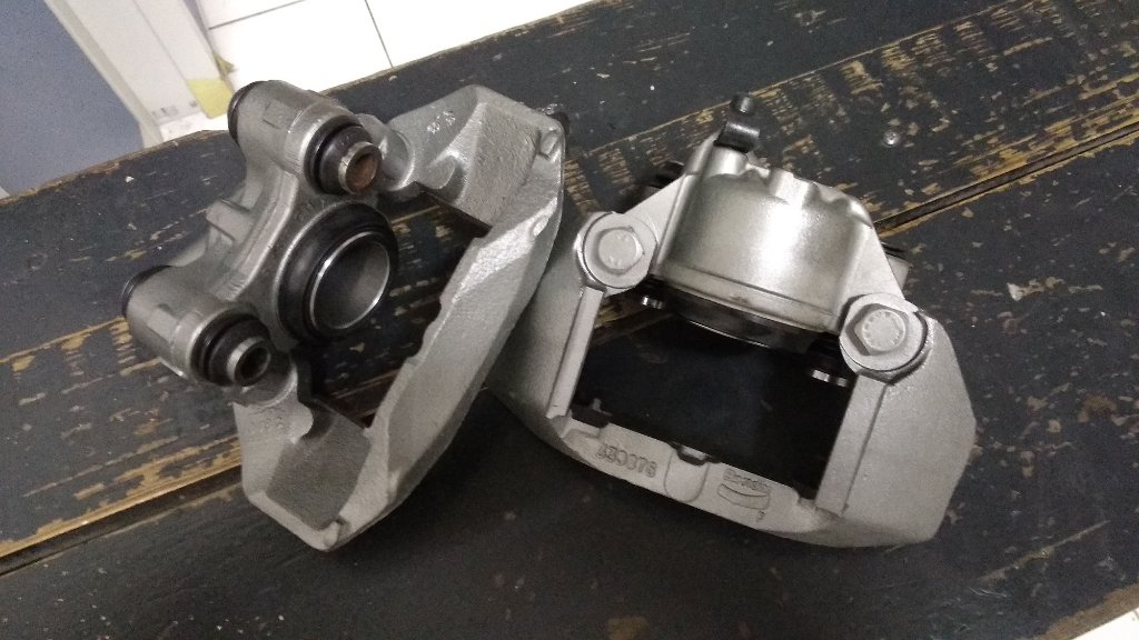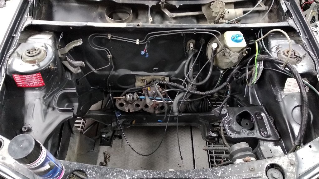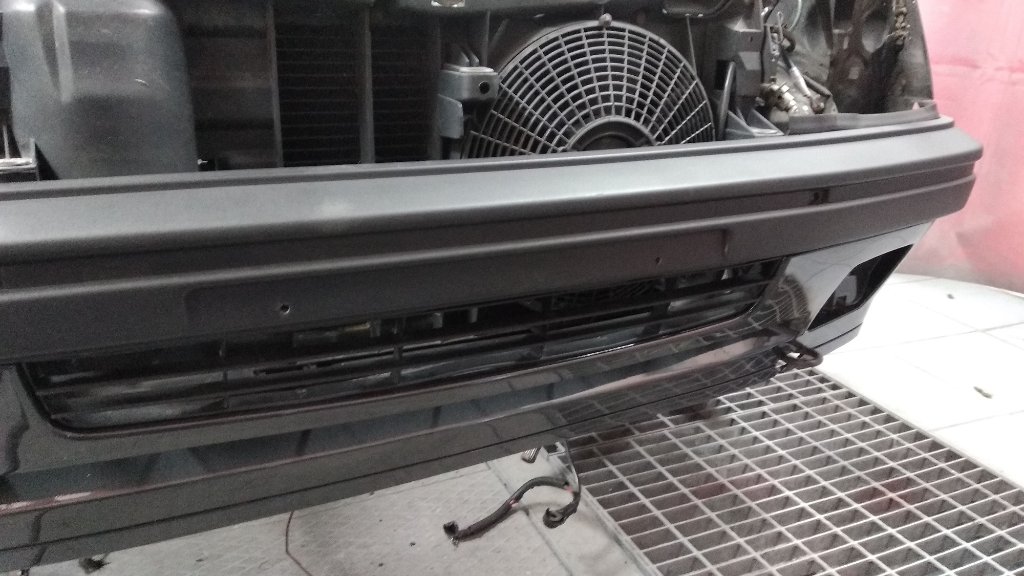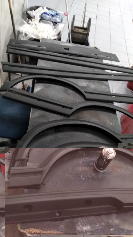 Ah, y otras fotos más del a primera mano de pintura al bloque. Y otra de la defensa trasera y paragolpes nuevos. Queda mucho por montar...